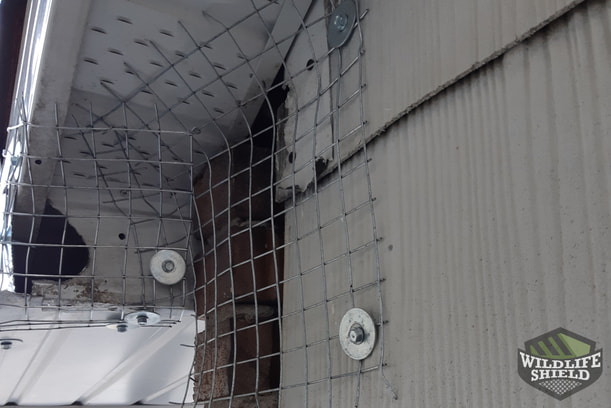 Along with the door, the wildlife technician excluded the deck by surrounding it with a galvanized steel mesh. First, he dug about a foot into the ground, then screwed the mesh into the deck and covered the trench with dirt. A total of 22 feet were installed.